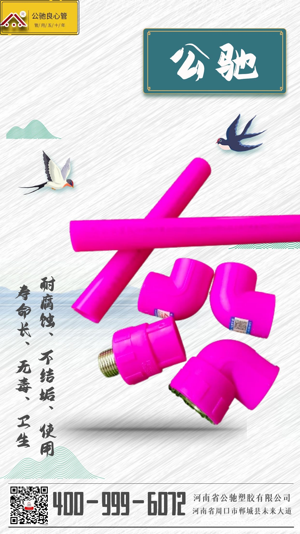 河南省公馳塑膠有限公司主要產品有PE給水管材、管件;HDPE排水管;PE、MPP、CPVC、電力穿線管;檢查井;PVC-U給水、排水管材、管件;電工導管;PP-R給水管材、管件;PE-RT地板輻射采暖管等百余個系列,數千個品種。